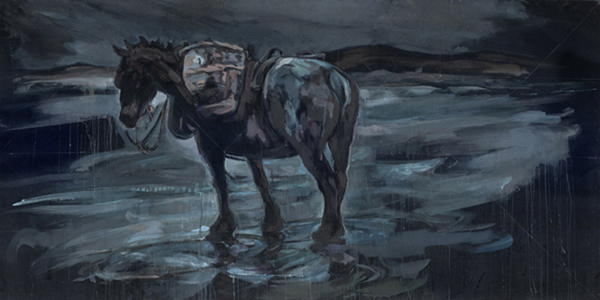acrylic on cotton velvet over panel 38"x76" (Available)